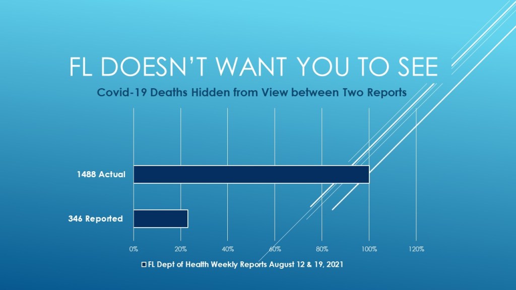 However, doing that reveals 1142 deaths which were not included in the August 19th data. There were 1,488 deaths reported in Florida during that week. Yet only 23% of deaths (346) are reflected clearly on the August 19th report.