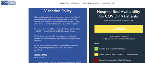 Tampa General : Hospital Bed Availability for COVID-19 Patients