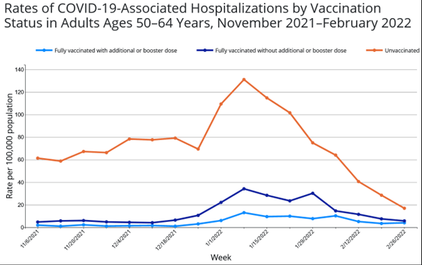 - Boosters prevented 88% of omicron hospitalizations among people aged 18–49; 76% for ages 50–64; and 85% for senior citizens.