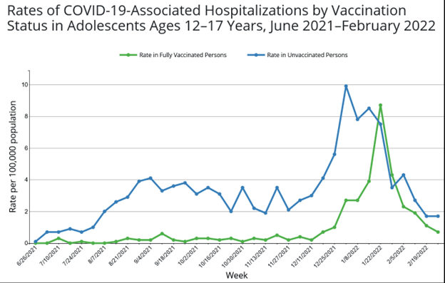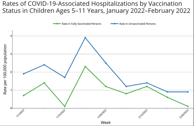 - As of 4-21-22, only 23% of those aged 5–11 had at least one shot; 60% of adolescents did.
