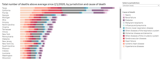 - CA has 70% more people than Florida, yet almost the same number of excess deaths.