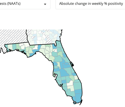 CDC: Florida Change in Weekly Percentage of Positivity by County