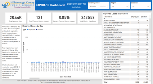 - Reported cases in the Hillsborough County School District rose 92%, from 76 to 146.