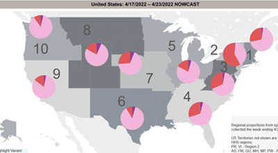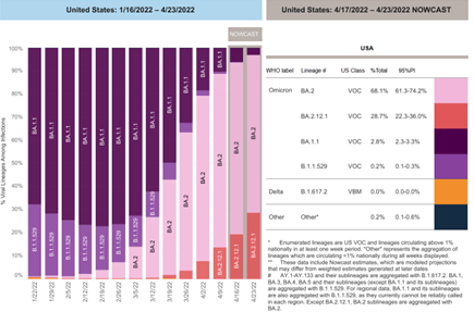 During April 17–23, 2022, the percentage of BA.2 increased from 91% to 96% (66% BA.2 and 30% BA.2.12.1) in the region which includes Florida: