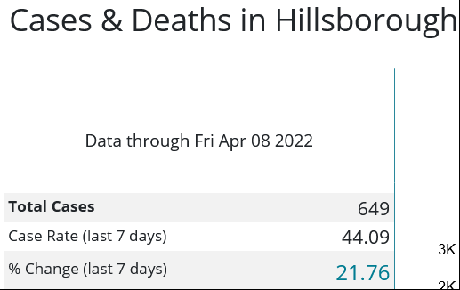 - Hillsborough County had 11 deaths, a 39% weekly decrease.