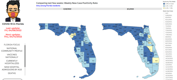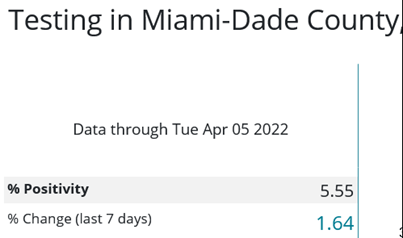 - The positivity rate in Miami-Dade County is now above the 5% threshold (5.6%).