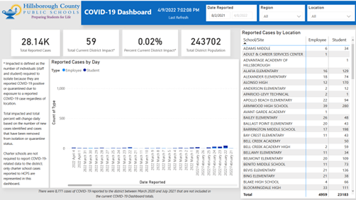 - Reported cases in the Hillsborough County School District fell to 21 over two days from 31 the previous week.