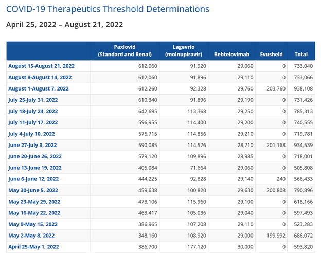 HHS: COVID-19 Therapeutics Thresholds, Orders, and Replenishment by Jurisdiction