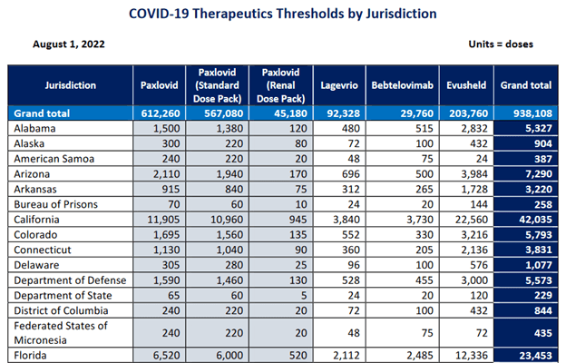 Public Health Emergency: State/Territory-Coordinated Weekly Distribution of COVID-19 Therapeutics