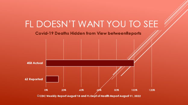 - On 6-6-22, a report from the Florida Auditor General revealed the state omitted 3,000 Covid deaths from official reporting during March–October 2020.
