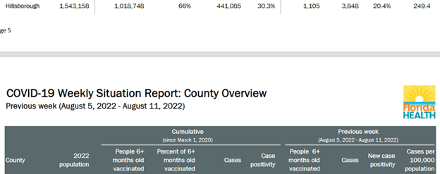 As of 8-11-22, 1.2% of all permanent Florida residents who are 65+ had died from Covid. That this improved since July 14th—when it was 1.3%—is impossible. The dip occurred in the 7-28-22 report even though the size of that demographic group remained the same.