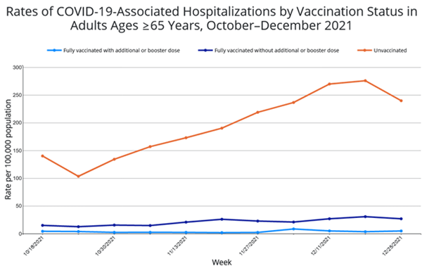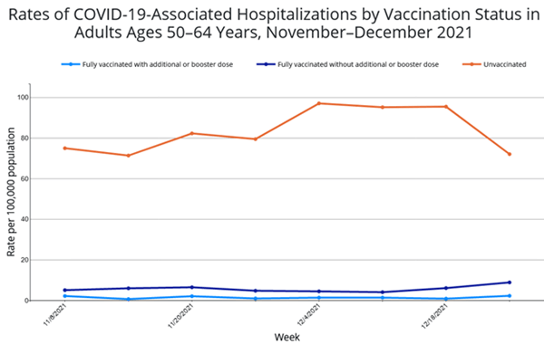 - Boosters prevented 98% of omicron hospitalizations among seniors; 97% for ages 50–64.