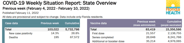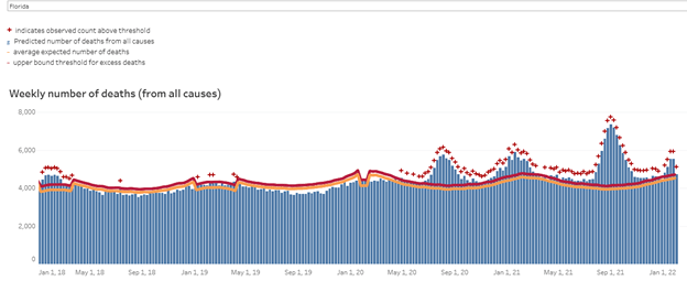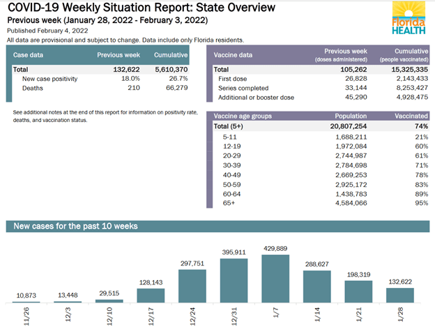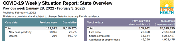 Until January 1, 2022, Florida was the only state in the US which was releasing statistics on a weekly basis. Tennessee has now switched to that schedule. Information available in Florida’s reports is far more limited than what the state formerly provided.