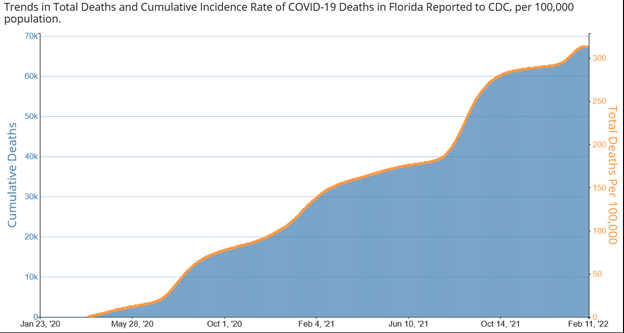 - As of February 10, 2022, FL has claimed 67,572 cumulative Covid deaths.