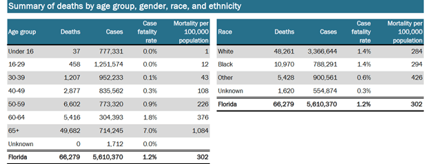 - FL has 9.3% of US deaths when vaccinations were available to all over 16 (6.6% US population).
