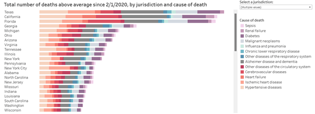 - CA has 70% more people than Florida, yet almost the same number of excess deaths.