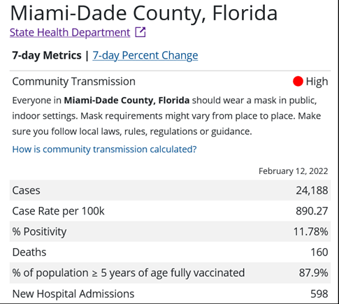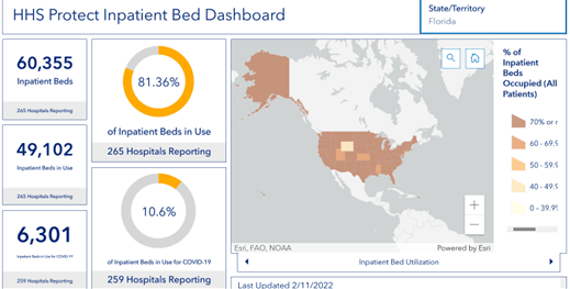 - On 2-10-22, 81% of hospital beds in Florida were full; 11% used by Covid patients.