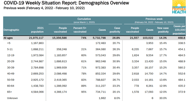 - Adolescents had positivity rates 2% higher than any other demographic group in Florida.
