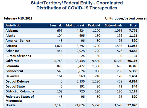 - During Feb 7–13, 2022, the federal government is sending enough highly effective doses to treat 11,900 Floridians.