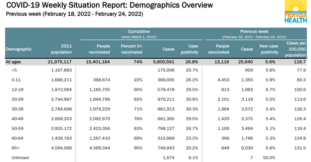 - Adolescents had positivity rates 1% higher than any other demographic group in Florida.