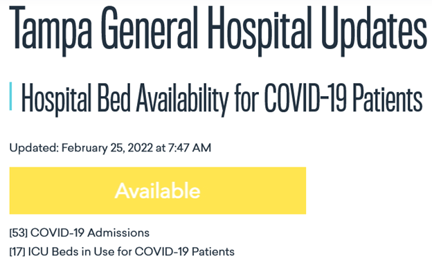 Tampa General: Hospital Bed Availability for COVID-19 Patients