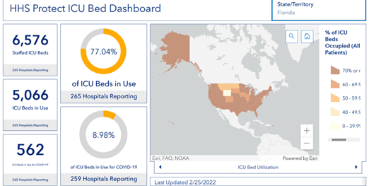 - On 2-25-22, 81% of hospital beds in Florida were full; 6% used by Covid patients.