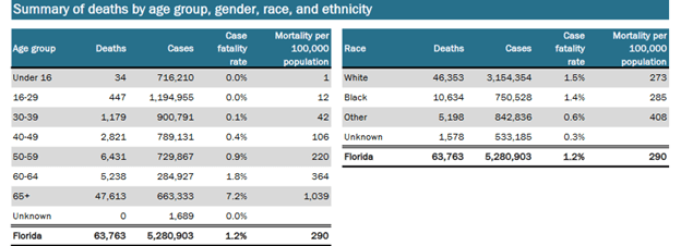 - FL has 9.7% of US deaths when vaccinations were available to all over 16 (6.6% US population).