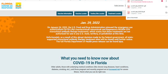 - DeSantis objected to no shipments; all FL antibody infusion centers closed on 1-25-22.