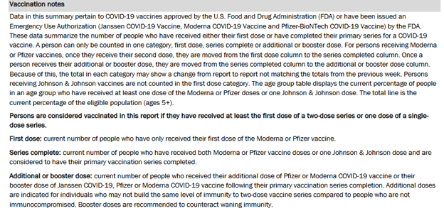 - The state does not report cases or deaths by vaccination status.