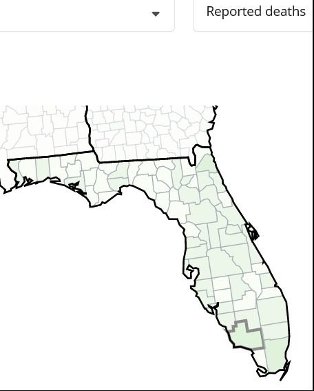Now Florida is halving the frequency of reports to the public to every two weeks. The state is directing people to the CDC, where there is an information lag.
