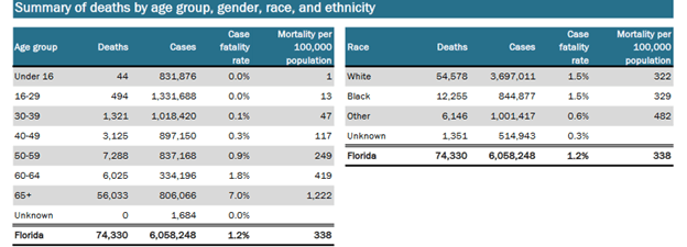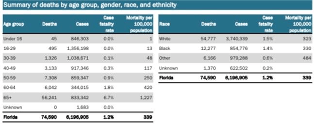 - FL does not report Covid deaths stratified by vaccination status.