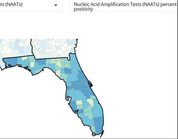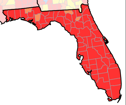 - The most recent CDC data shows 94% of Florida counties have high transmission.