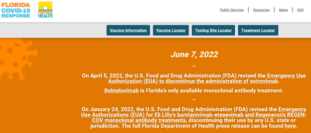 Florida Health: Florida to Open Additional Monoclonal Antibody Therapy Treatment Sites