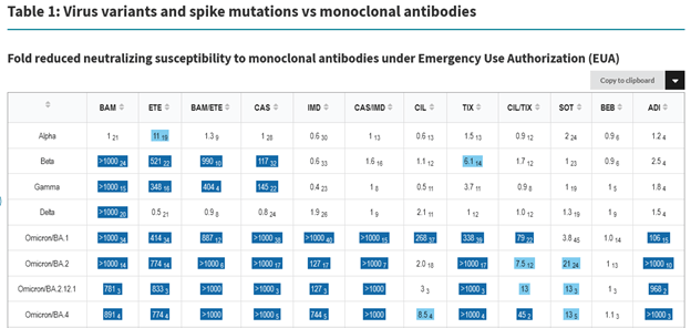 At that time, there was only one monoclonal antibody produced in the US which could attach to circulating omicron BA.1 particles.