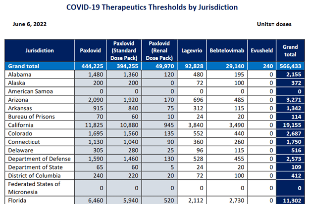 Public Health Emergency: State/Territory-Coordinated Weekly Distribution of COVID-19 Therapeutics