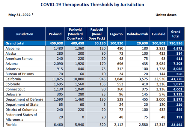 Here is the most recent federal allocation of 11,312 Covid-specific treatments to Florida: