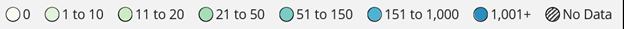 This is the percentage of change in hospital admissions by county. The locations with the largest increases are in the Panhandle, ranging from 85–100%: