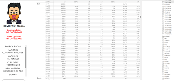 Until June 2021, Florida reported Covid statistics every day with an online database.