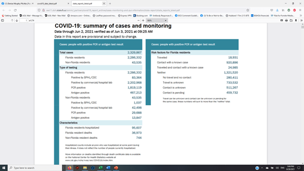 Until receiving a demand from a bipartisan Congressional committee on June 18th, the FL Dept of Health prevented hospitals and doctors’ offices from preordering the vaccines which the FDA and CDC approved for children at least 6 months old. See the Vaccination section for a more detailed account.