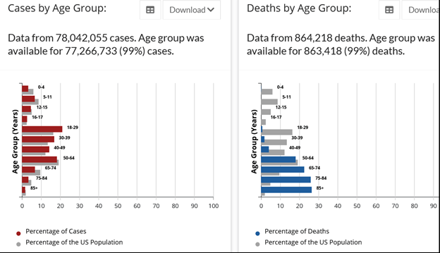 - FL has 9.1% of US deaths when vaccinations were available to all over 15, for 6.6% of the US population.