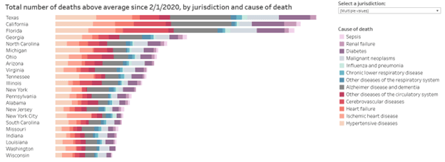 - CA has 70% more people than Florida, yet almost the same number of excess deaths.