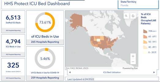 On the morning of June 24, 2022, 78% of hospital beds in Florida were full, down from 79% last week.