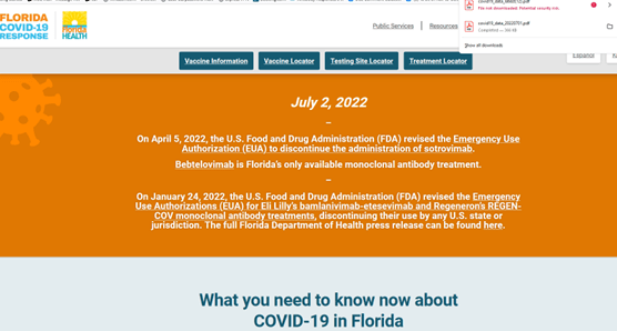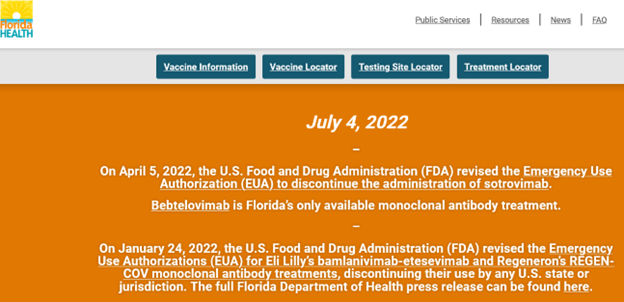 Florida Health: Florida to Open Additional Monoclonal Antibody Therapy Treatment Sites