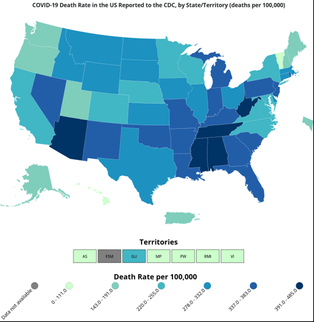 - Among the 6 largest states, the Florida death rate is below only Pennsylvania’s.