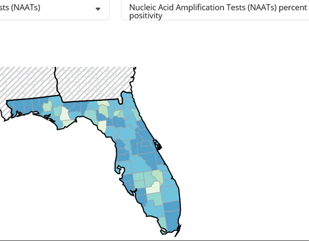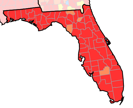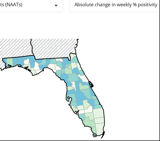 - The most recent CDC data shows 94% of Florida counties have high transmission.