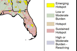 On June 9th, the CDC deemed much of Florida as either a sustained or newer hotspot:
