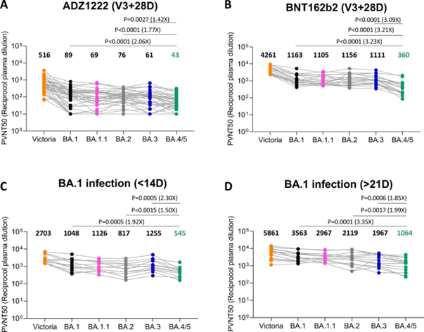 MedRxiv: Further Antibody Escape by Omicron BA.4 and BA.5 from Vaccine and BA.1 Serum