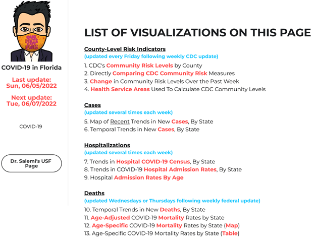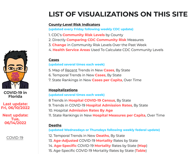 Even before his hard drive crashed after April 24th, he did not have direct access to the Florida data. His rebuilt site is omitting data derived from the Florida Department of Health reports: