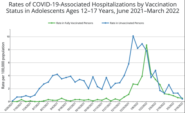 - During March 12–19, 2022, unvaccinated children aged 5–11, were 133% more likely to need hospital admission than their vaccinated peers. Those aged 12–17 were 20% less likely.
