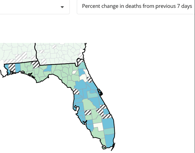 Beginning in June 2021, Florida removed all archived Covid data from their web site. Until March 17th, they replaced the statistics from the previous week with a new report. Now that occurs every two weeks.